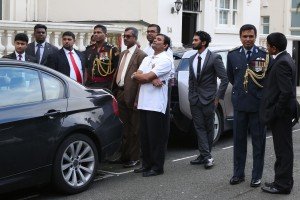 The peaceful protesters were mocked, laughed at and photographed by Sri Lankan authorities who came out of the High Commission. One military officer wearing the much hated military uniform ran a finger across his neck as to gesture that he would slit our neck. This outrageous action was photographed and filmed by the protesters and is widely being shared on Social Media.