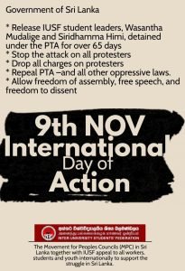 * Release IUSF student leaders, Wasantha Mudalige and Siridhamma Himi, detained under the PTA, for over 65 days